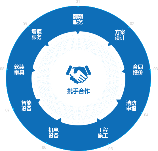 專業成就品牌、裝修設計施工消防一站式溢彰品質價值、專業工裝裝修的人文創意化、智能產業鏈解決方案。